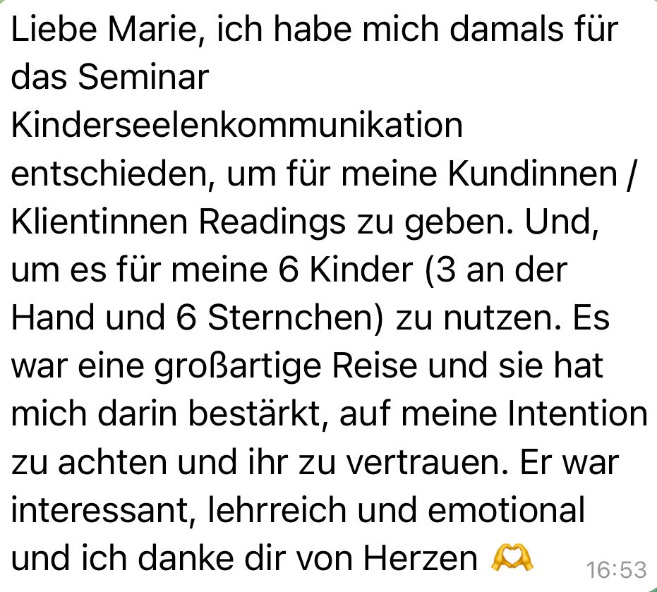 Danach hatte ich den Impuls, es mit anderen auszuprobieren. Und so kamen eine Frau mit Kinderwunsch, eine Schwangere und eine Frau mit Kindern auf mich zu, mit denen ich meine ersten Kinderseelenreadings machen durfte. Viele weitere folgten und ich wurde mit jedem Kinderseelenreading noch besser und sicherer. Ich bin immer noch ganz dankbar und demütig für alle, die mir ihr Vertrauen geschenkt haben.